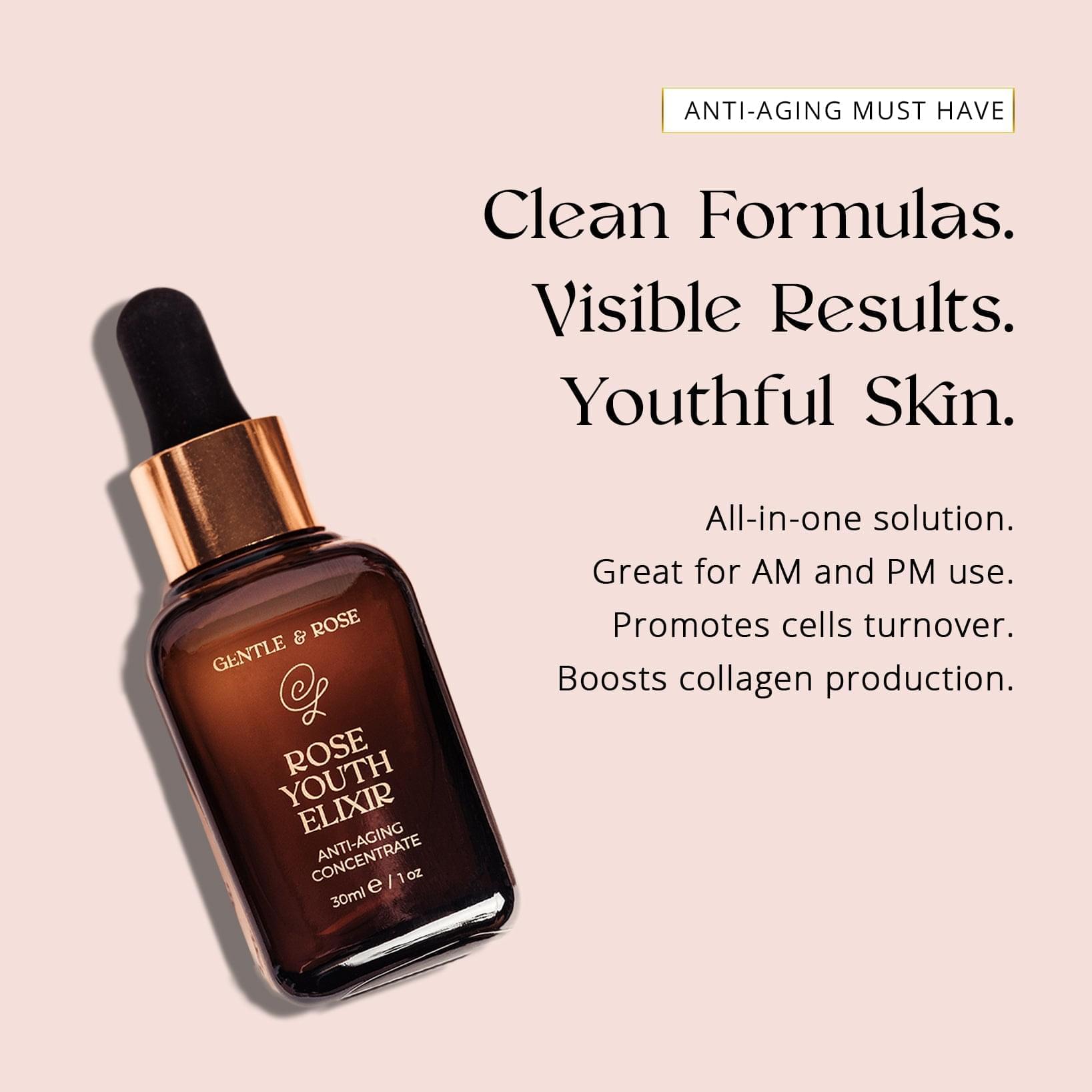 Crafted to rejuvenate and heal the skin, the Rose Youth Elixir stimulates collagen production, strengthens the skin’s foundation and minimizes the appearance of lines and wrinkles.